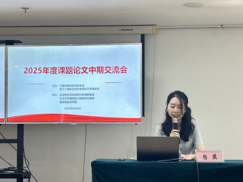 为深化税务学术研究与实践融合,近日,鄞领税越微学院联合宁波市鄞州区税务学会召开了课题研究中期交流会。本次会议汇聚税校双方精锐骨干,聚焦税收改革前沿议题,借助全国税务系统税收科研调研基地和宁波市金穗税收大数据研究基地研究力量,以“学术赋能实践、科研驱动创新”为导向,展开了一场兼具理论深度与实践价值的智慧碰撞。