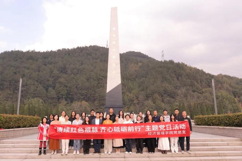 为深入学习贯彻新时代党的建设总要求,传承红色基因,弘扬革命精神,在新一届党总支委员会履新之际,2025年10月29日下午,经济管理学院党总支组织全体师生党员,携手“鄞领税越”微学院共建支部——鄞州区税务局首南税务党支部,共赴宁波樟村四明山革命烈士陵园,开展“赓续红色根脉 齐心砥砺前行”主题党日活动。本次活动通过祭奠英烈、重温誓词、参观学习、劳动实践等环节,引导师生党员在沉浸式体验中坚定理想信念,凝聚奋进力量,展现了新班子推动党建与专业融合、深化微学院共建的新气象。