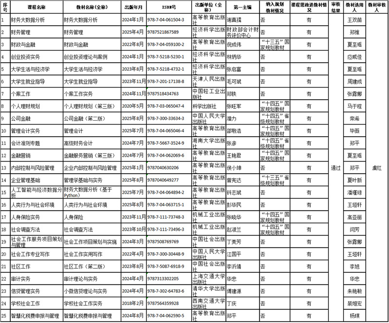 根据《浙江工商职业技术学院教材建设与管理办法》(浙工商教〔2021〕109 号)文件要求,经课程主讲教师申请、专业初审、学院教材建设与选用工作小组审核等环节,确定《财政与金融》等25种教材为2025-2026学年第二学期课程选用教材,现予以公示。公示3个工作日,公示期从12月26日至12月30 日,在公示期间,对公示教材有异议,均可来人、来电向学院反映。反映情况要实事求是,真实准确,有明确的具体内容。具体教材清单详见附件。