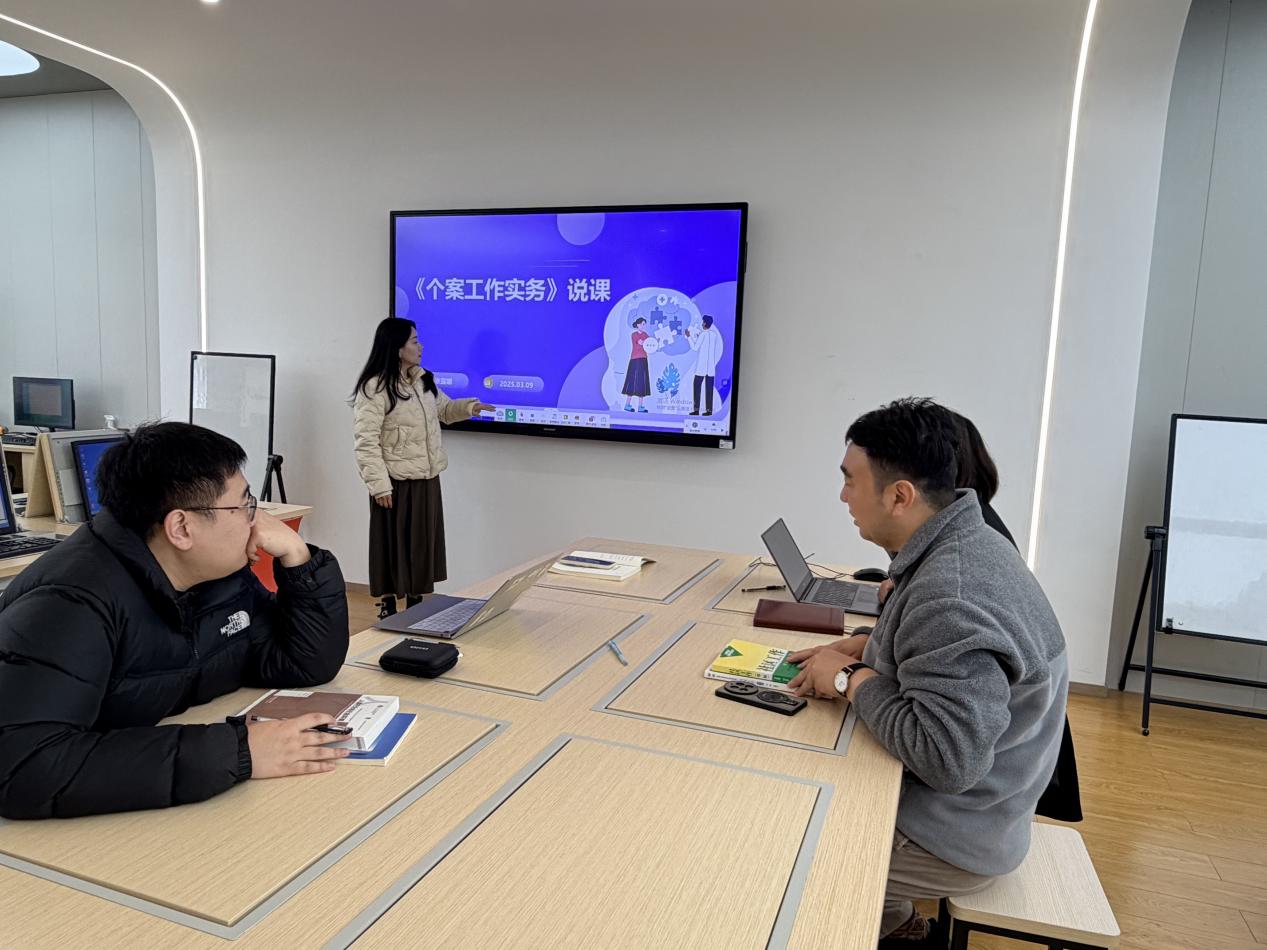 说课环节结束后,会议着重围绕自编教材的两门课程——《自我认识与沟通技巧》和《金融社会工作》,就课程框架及内容展开了深入探讨与交流。通过明确教学方案,教师们对这些课程的授课理解得以进一步深化。